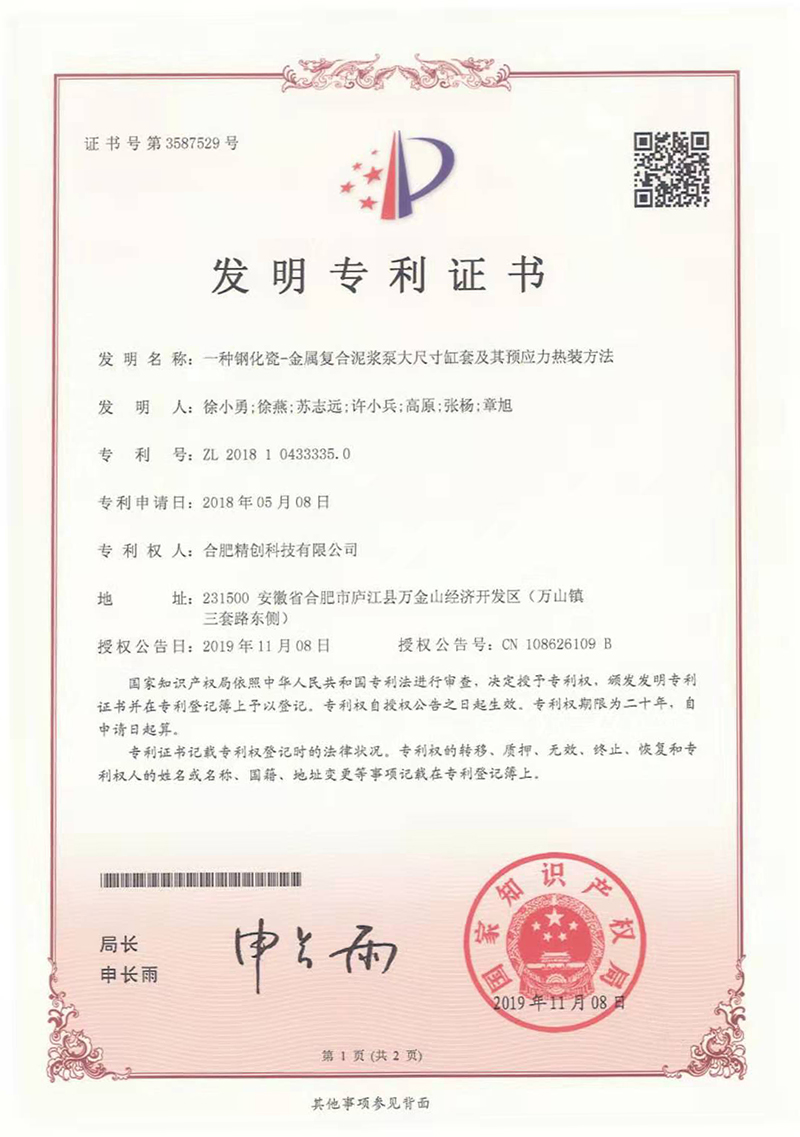 (2018發(fā)明專利)一種鋼化瓷-金屬復(fù)合泥漿泵大尺寸缸套及其預(yù)應(yīng)力熱裝方法