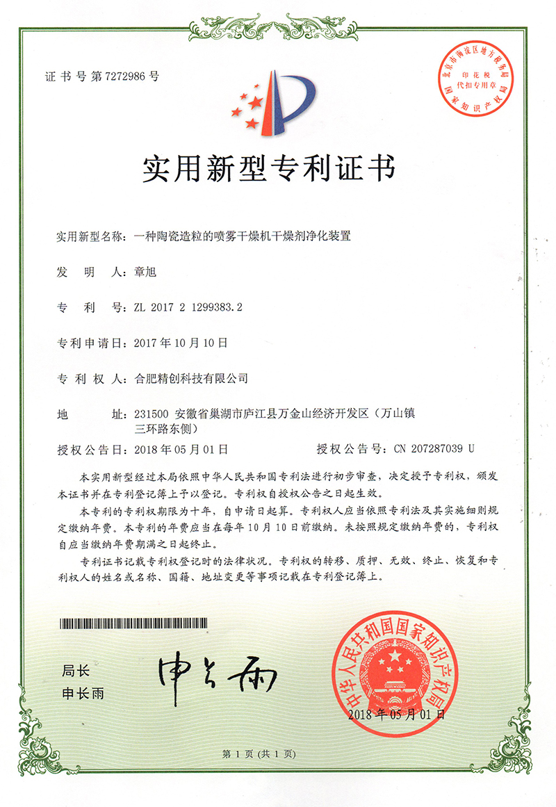 (2018實(shí)用新型)一種陶瓷造粒的噴霧干燥機(jī)干燥劑凈化裝置